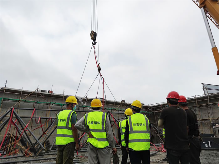 6.为确保.五指山加油站球形网架安装顺利,应有详细的五指山施工组织设计。网架安装必须保证结构的稳定性和不产生的附加变形。